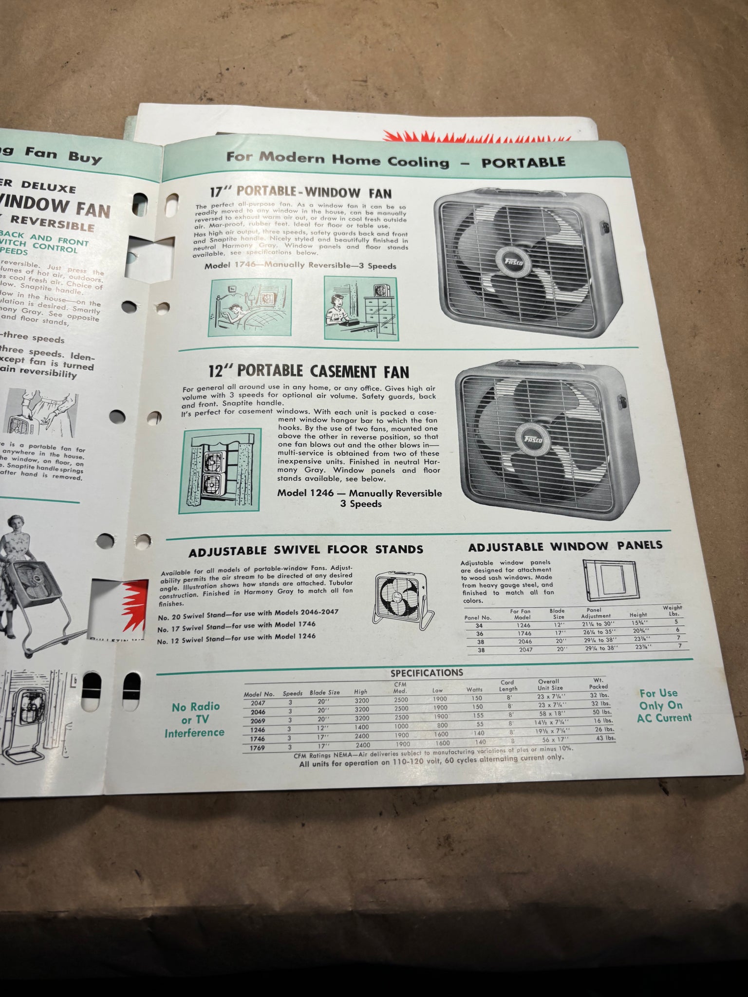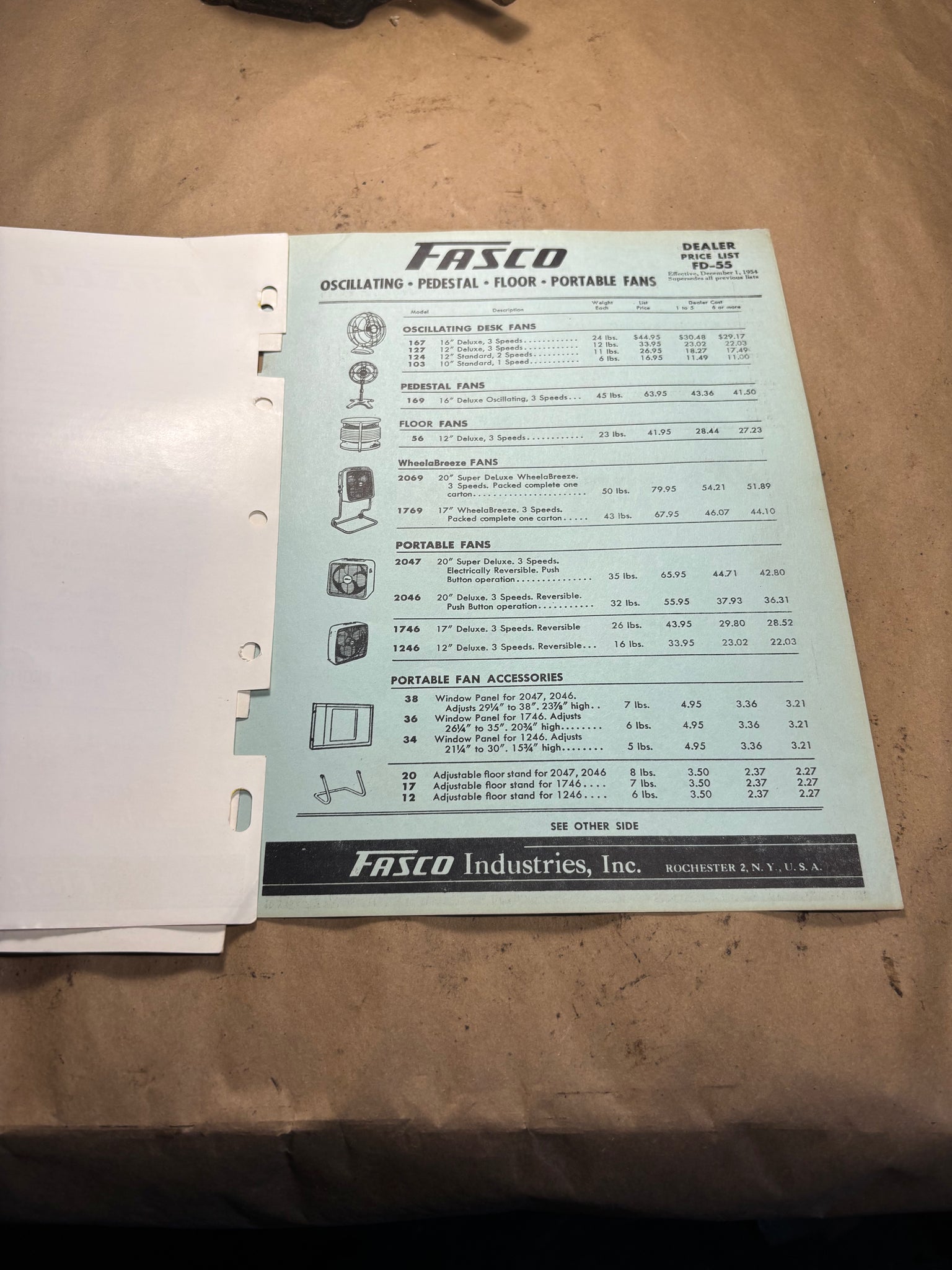 1955 Fasco Fan catalog portable floor pedestal oscillating