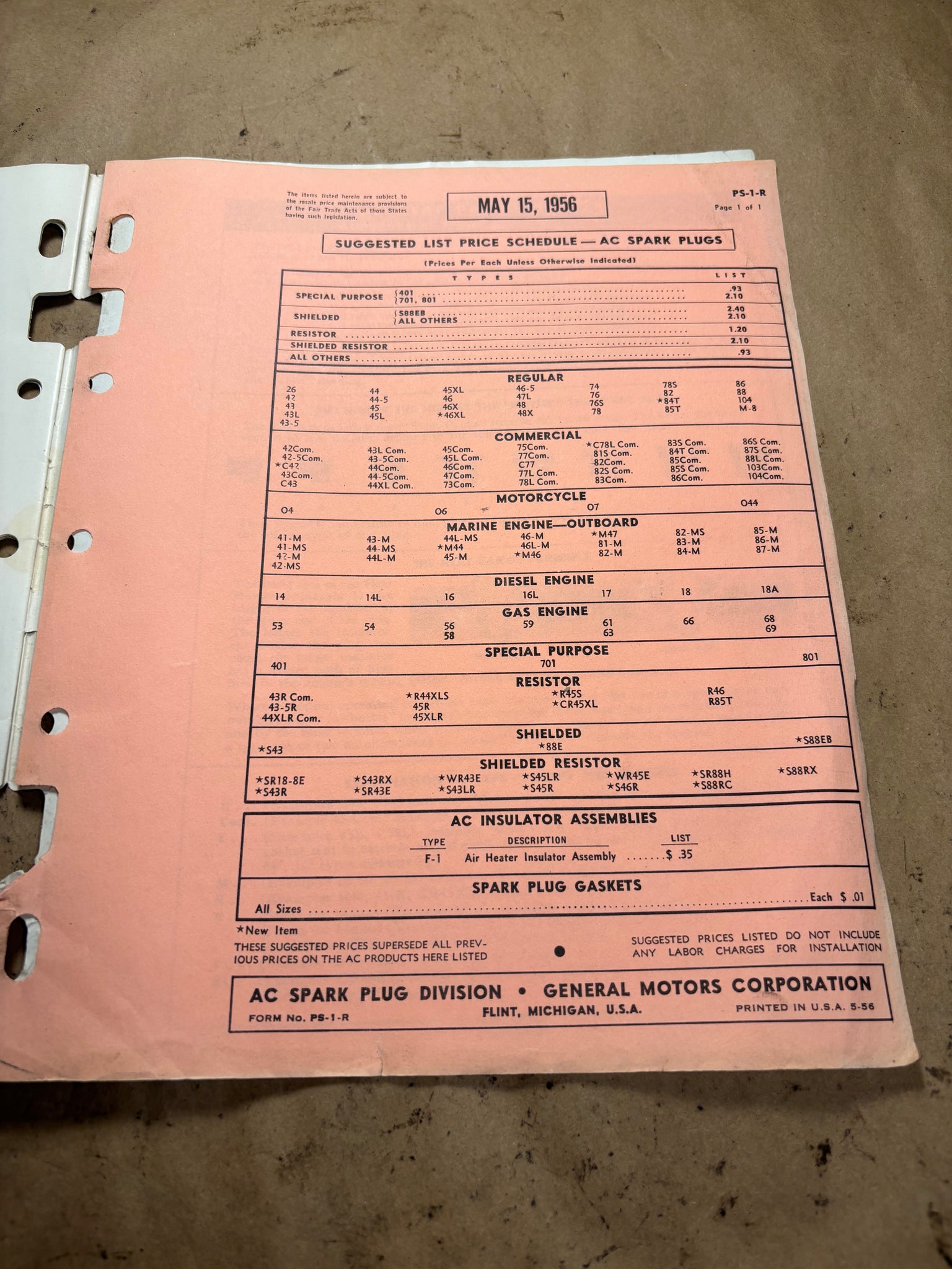 1956 GM AC Spark Plugs Specification Chart Catalog