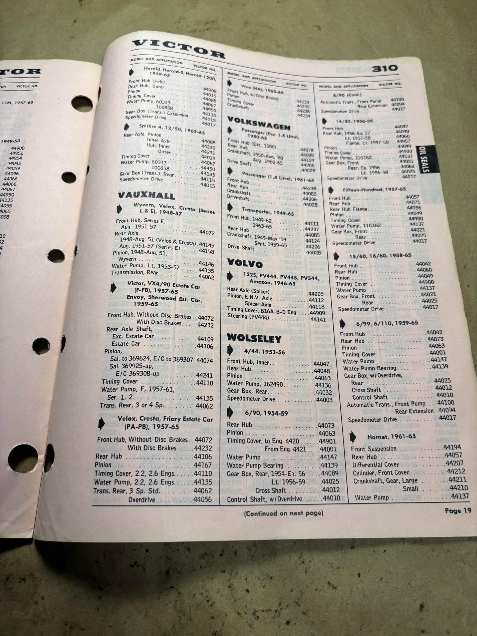 1966 Victor Imported Car Oil Seals and Gaskets catalog