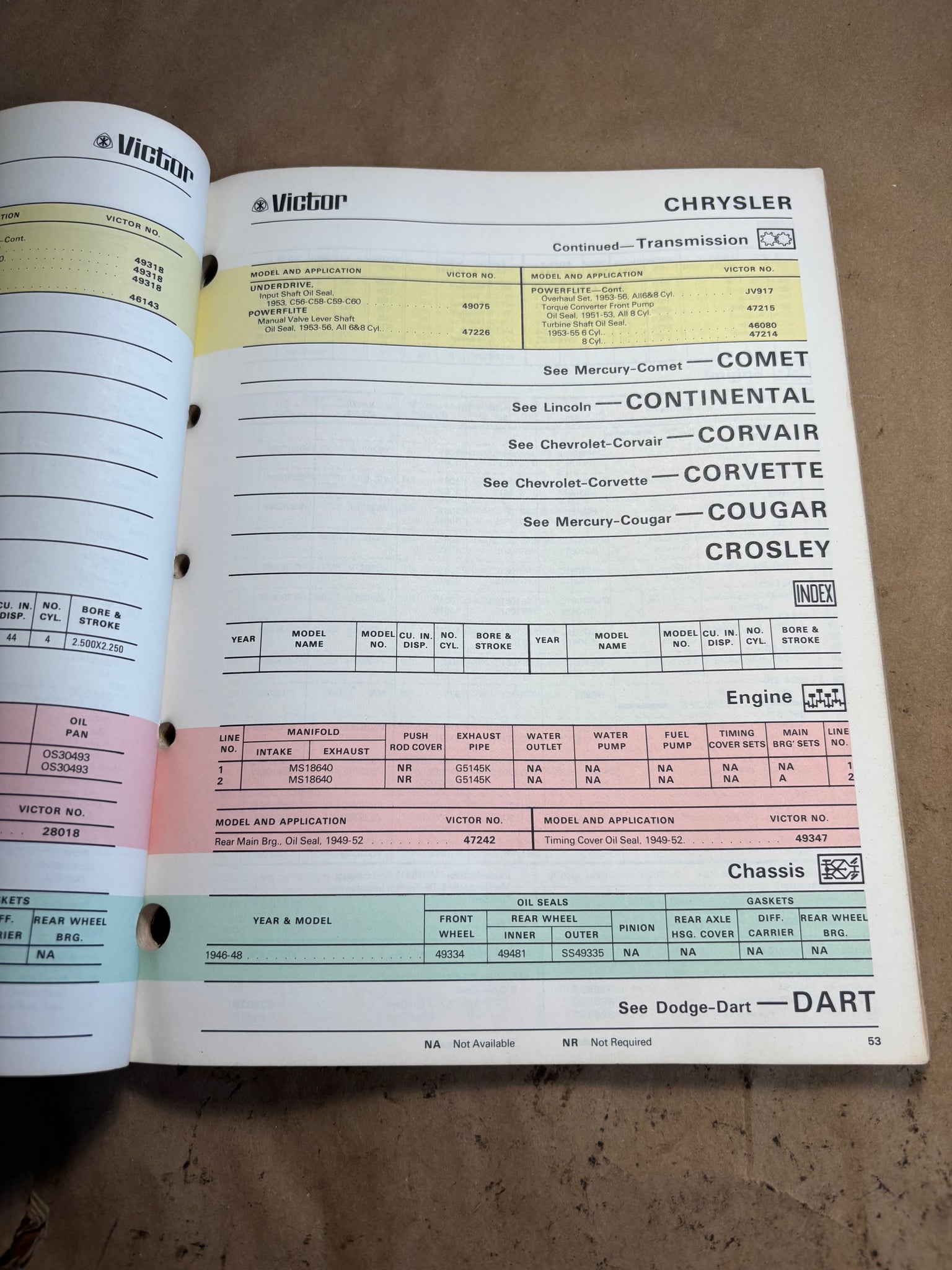 1967 Victor Oil Seal and Gasket Passenger Guide PM-101-67