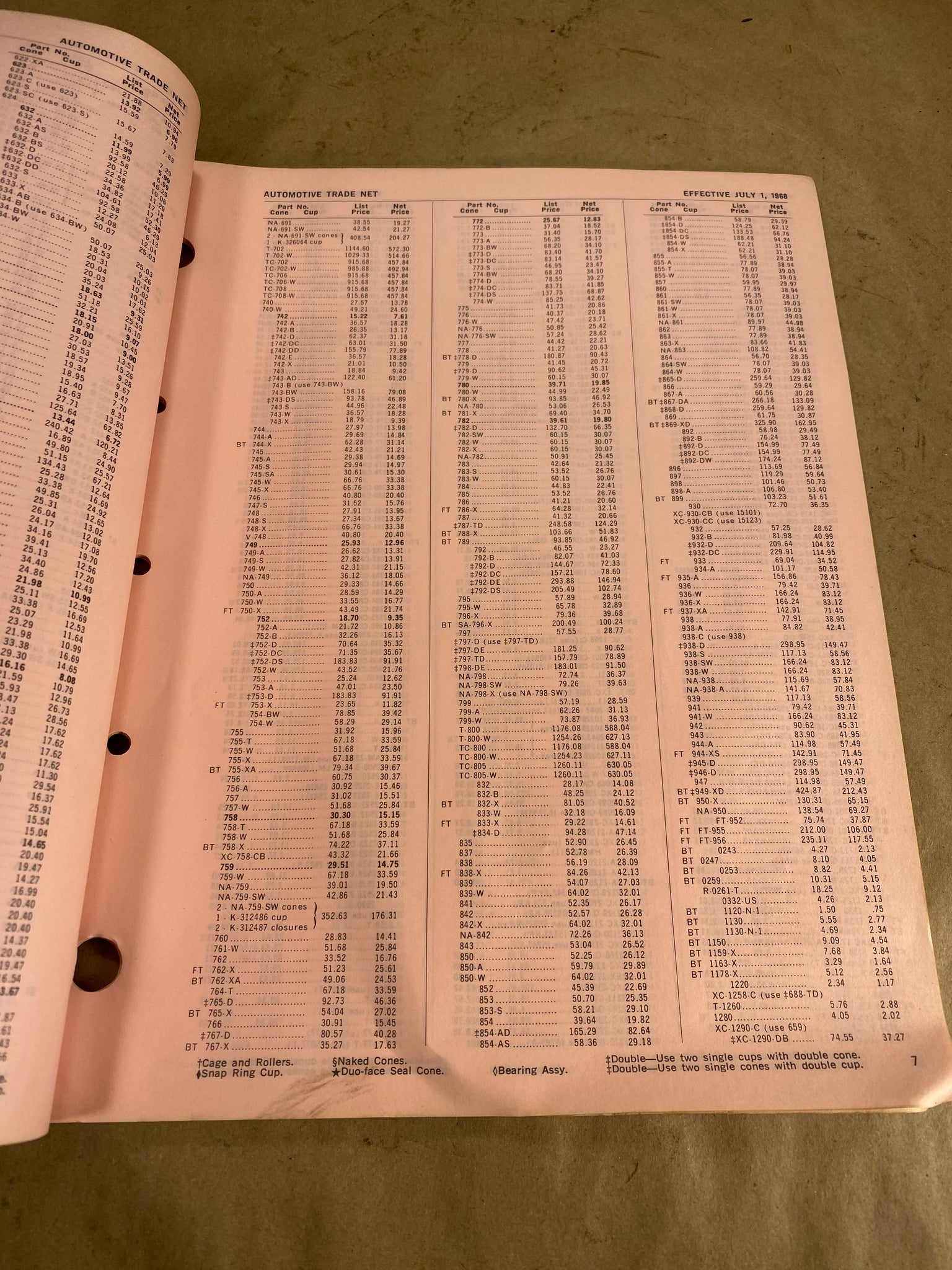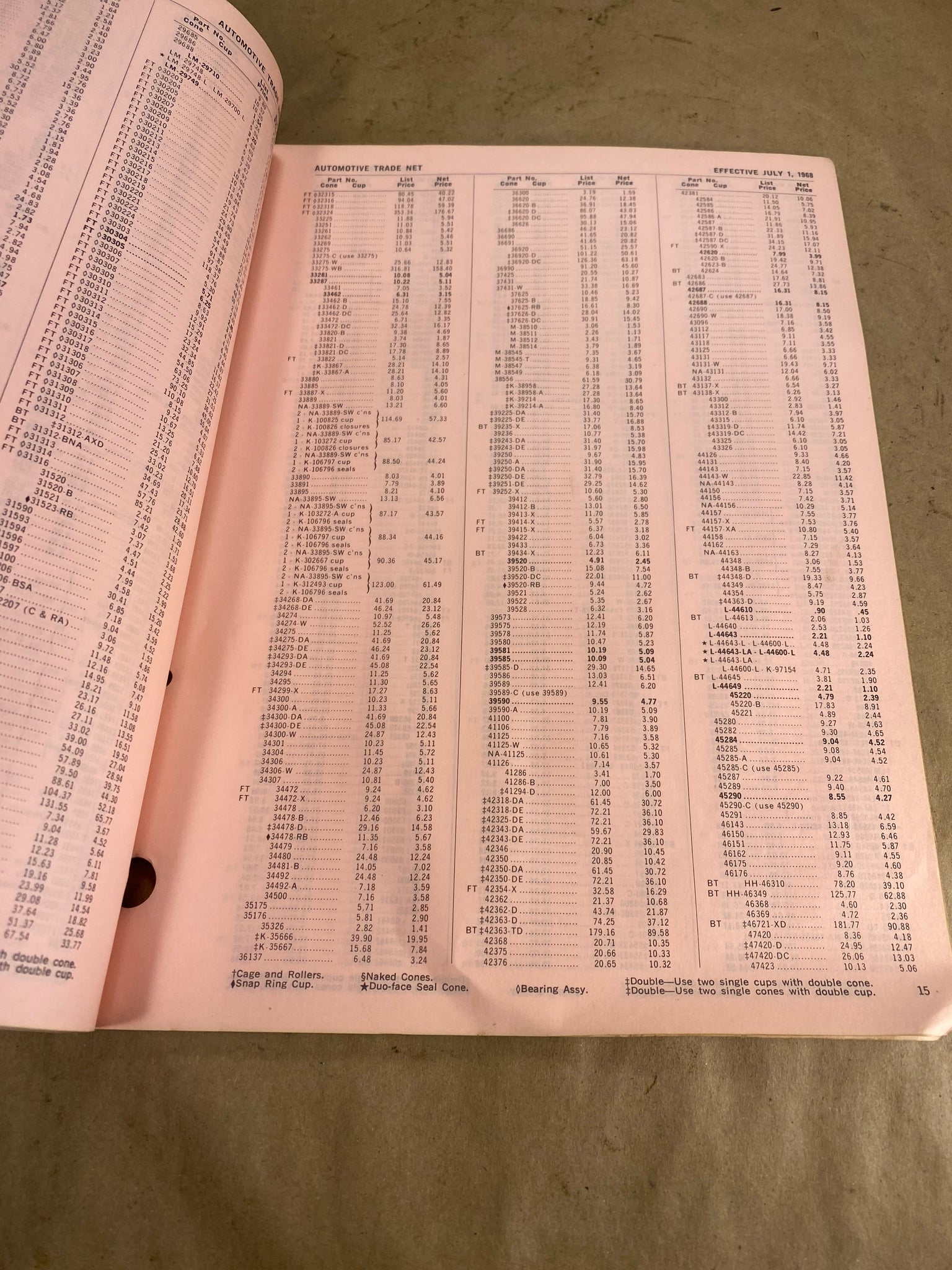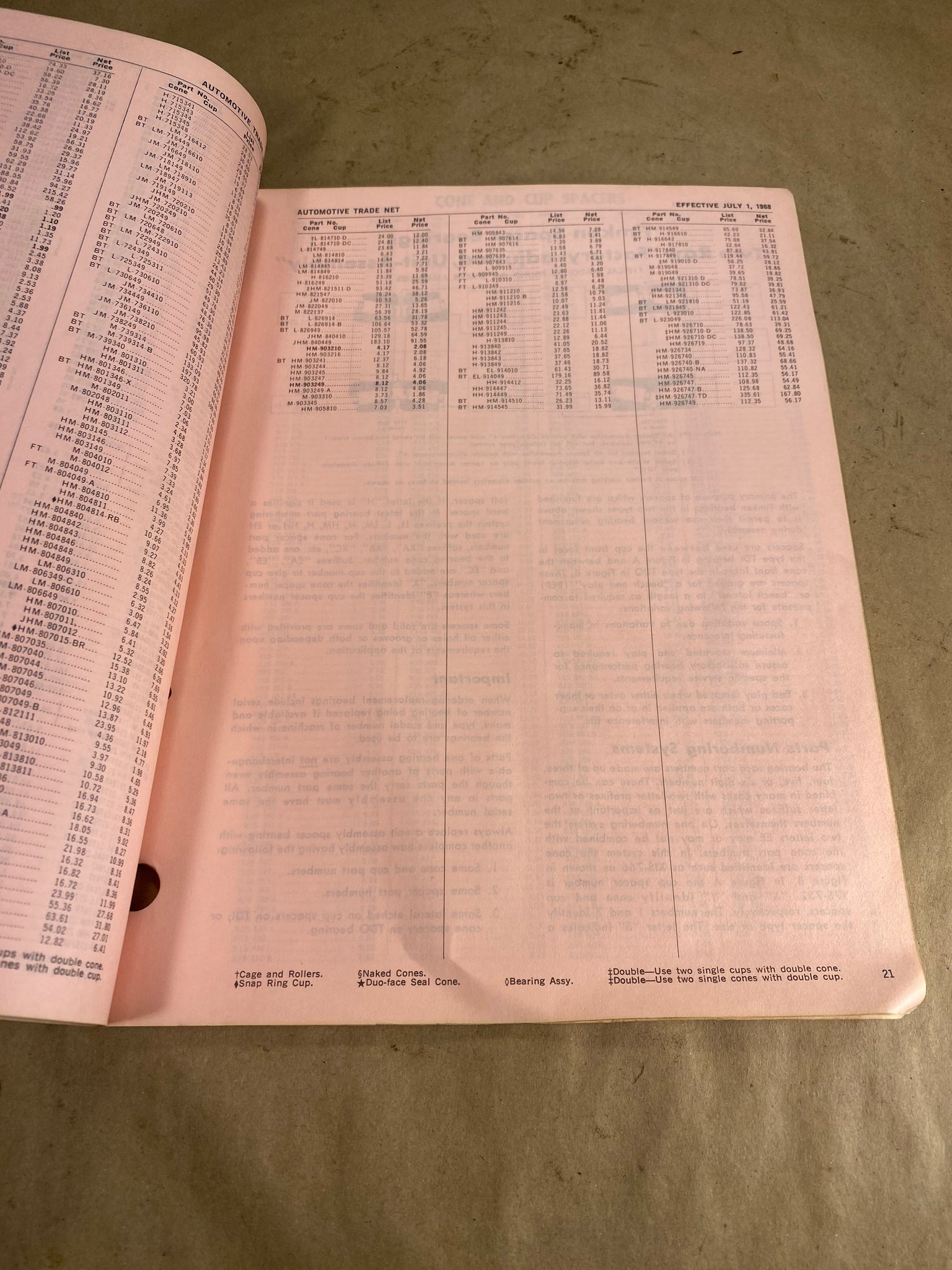 1968 Timken Tapered Roller Bearings and Spacers dealer price list