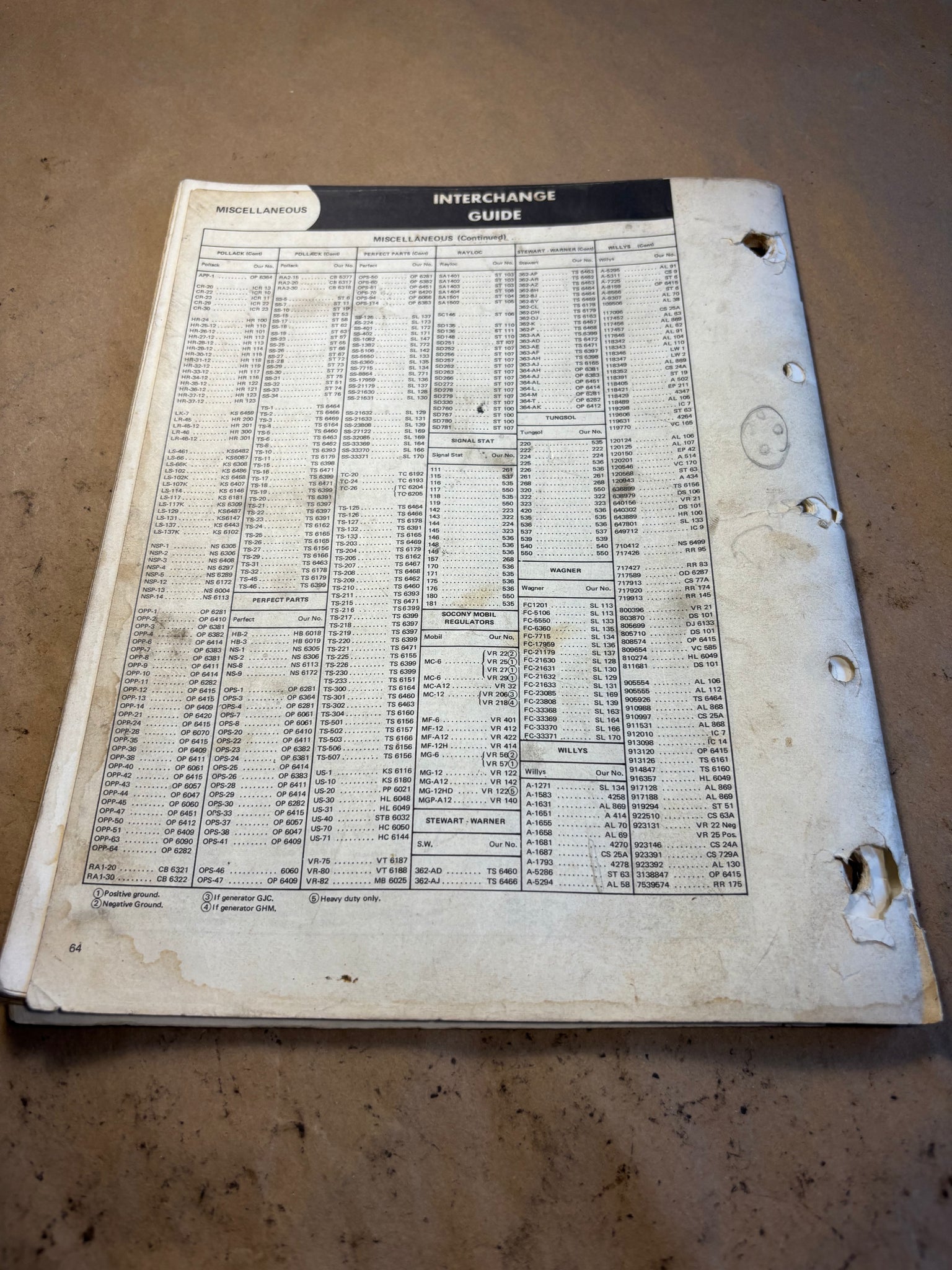 1969 NAPA Echlin Part Number Interchange Guide for Ignition and Switches