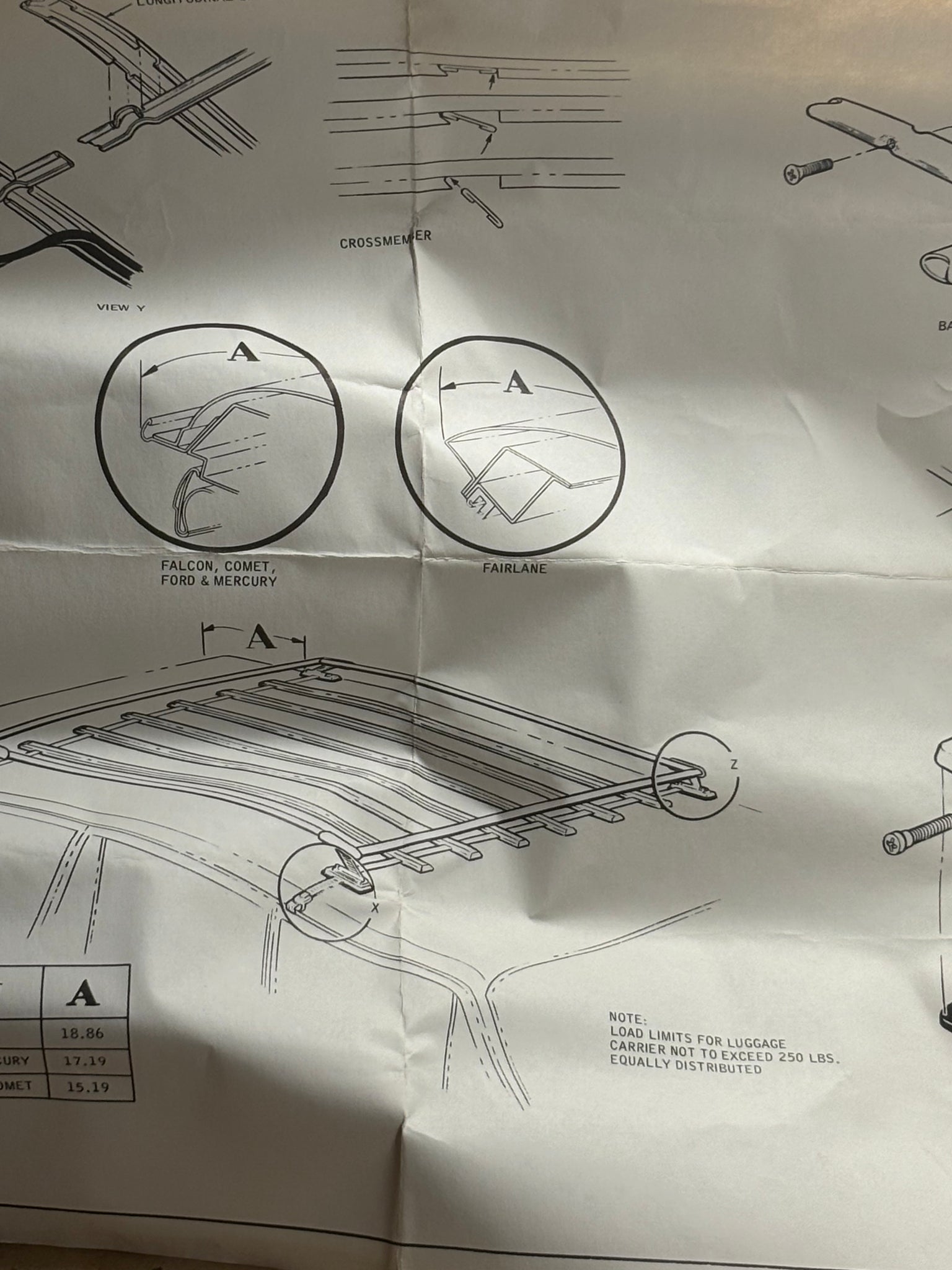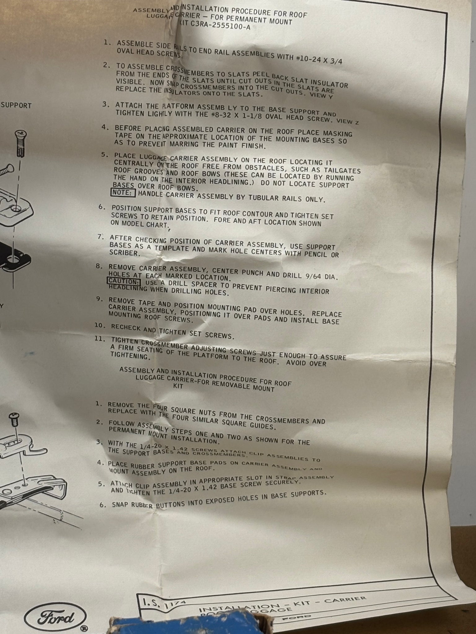 1963 Ford roof rack installation kit NOS Fairlane Comet Falcon