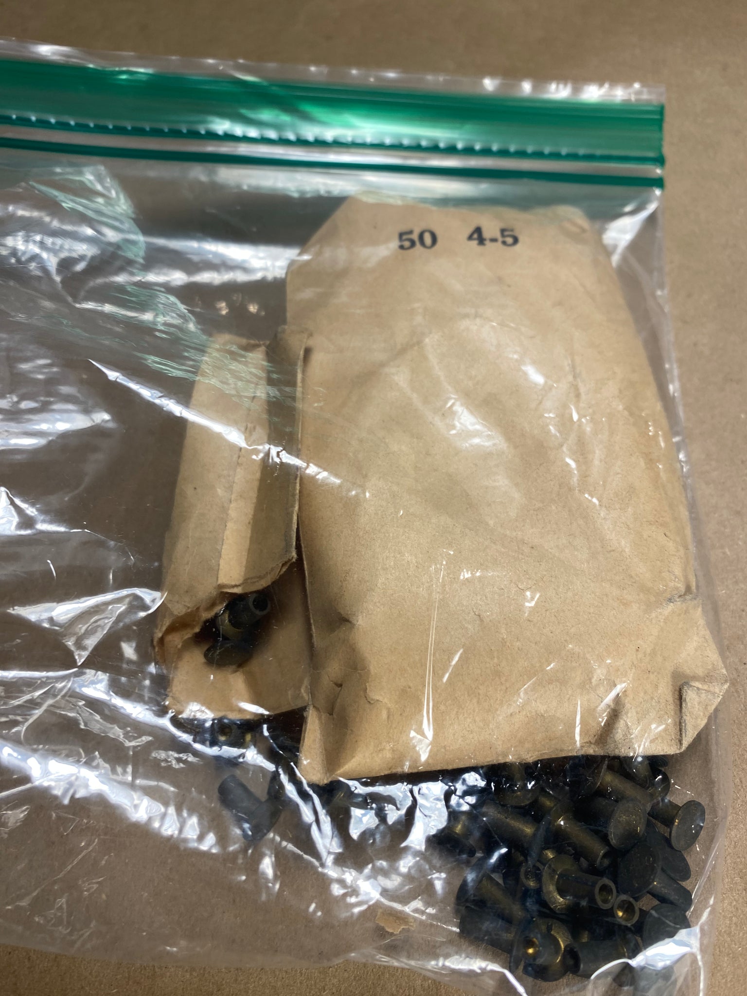 Vintage 50-4-5 brass brake rivets 5/16” head 1/8” shank 3/8” depth