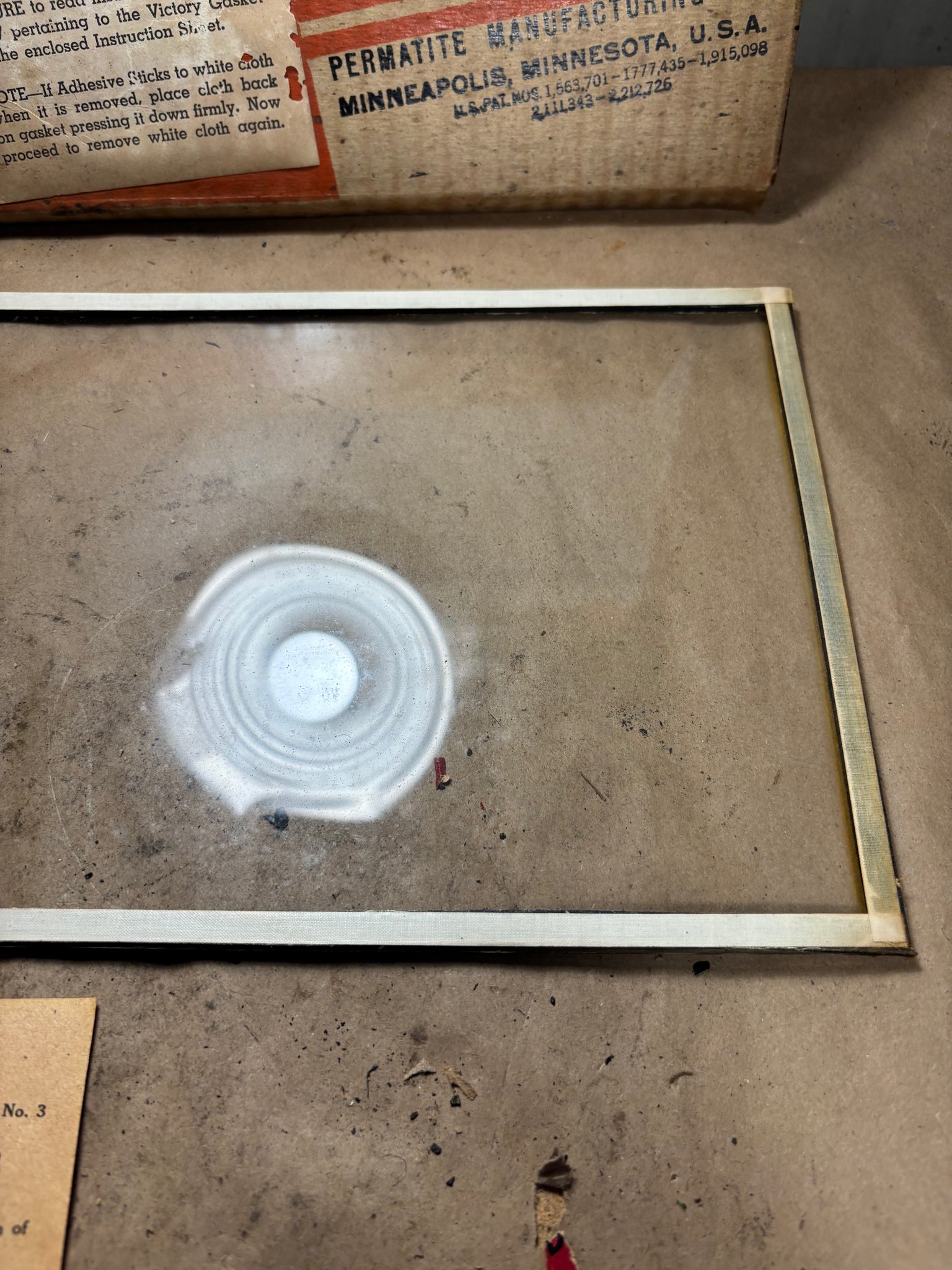 glass is dirty but not scratched. I can’t vouch for the gum on tape but I’d guess it’s probably dried out.